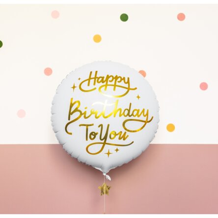 Dimensiune: 35 cm diametru - balon din folie rotund cu inscripție "Happy Birthday to you".