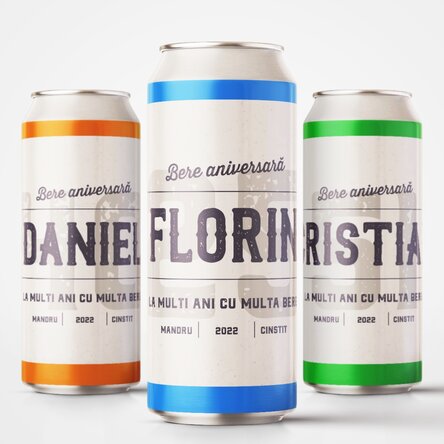 Dacă vrei să fii un pic sarcastic și să oferi un cadou mai puțin comun, te poți îndrepta către acest model de bere, cu un îndemn aparte. Mai mult de atât, o poți personaliza cu numele destinatarului, anul și ziua când îi oferi cadoul sau orice alt text care dorești să fie scris pe doză. Ce pot personaliza? Eticheta de bere poate fi personalizată cu text.
