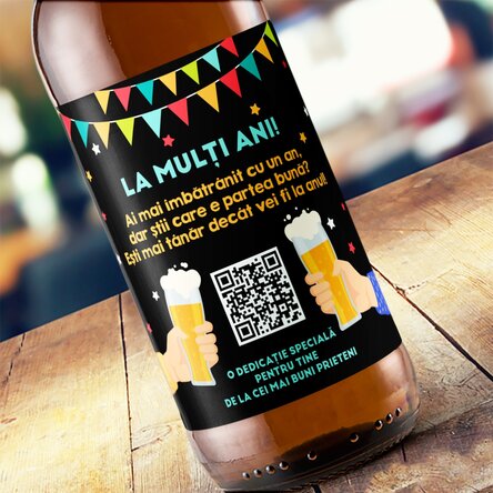 Bere personalizată cu cod QR și text - Happy Birthday