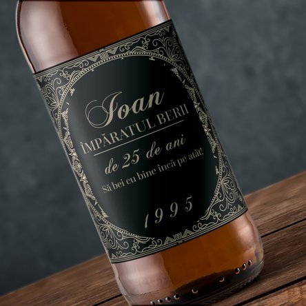 Să mai spunem ca e vorba de bere craft, făcută într-o microberărie cu ingrediente alese cu grijă, pasiune și pricepere germană, toate desăvârșite într-un gust creat special pentru cei care apreciază calitatea. O poveste în nuanțe galben-aurii, cu arome proaspete și răcoritoare. Ce pot personaliza? Eticheta de bere poate fi personalizată cu text.