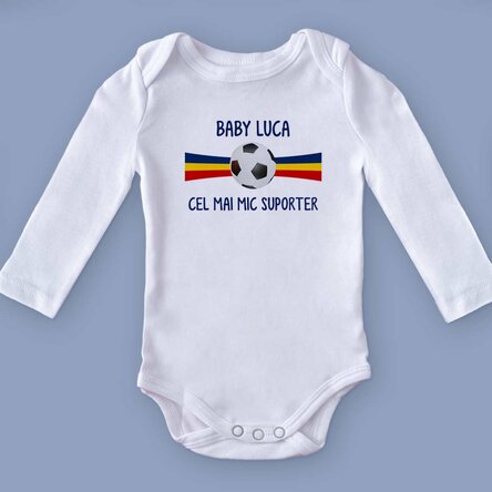 Fiecare meci al echipei de fotbal a României este o ocazie de a-ți arăta pasiunea și loialitatea față de culorile naționale, așadar și cel mai mic membru al familiei poate participa pentru că avem un body personalizat special pentru ei.