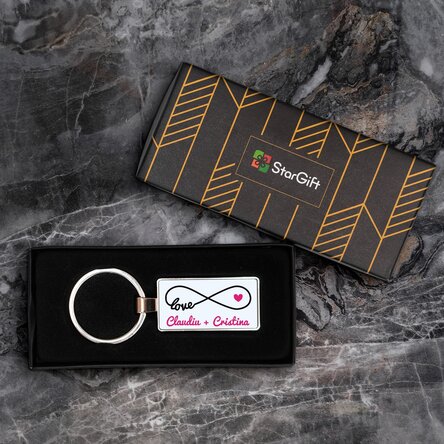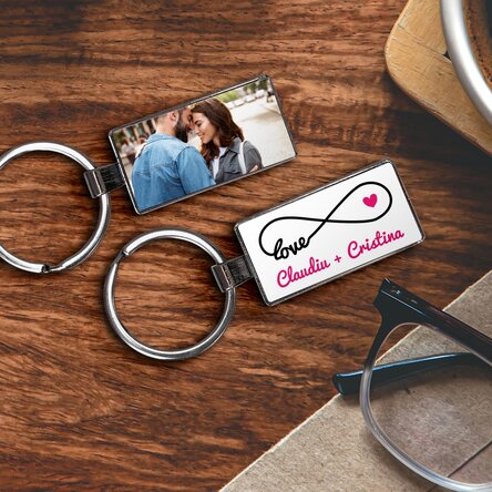 Breloc personalizat cu o poză și text - model infinity love