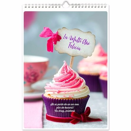Cum il poti personaliza? Personalizează fiecare lună cu poza preferată, cu un simplu click! Poți adăuga, de asemenea, un mesaj opțional de până la 120 caractere care va apărea pe copertă.