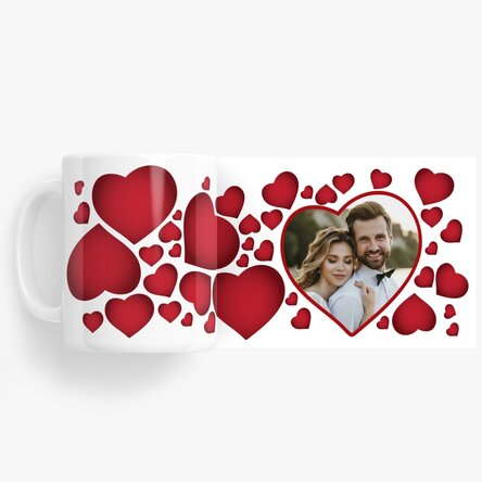 Cană personalizată cu inimioare și o poză