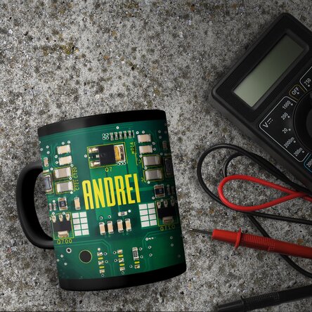 Cană neagră personalizată cu text pentru pasionații electronică - Motherboard