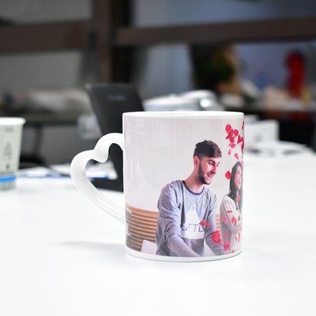 Cană personalizată cu o poză landscape - model toartă în formă de inimă