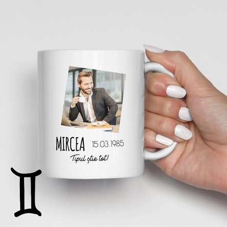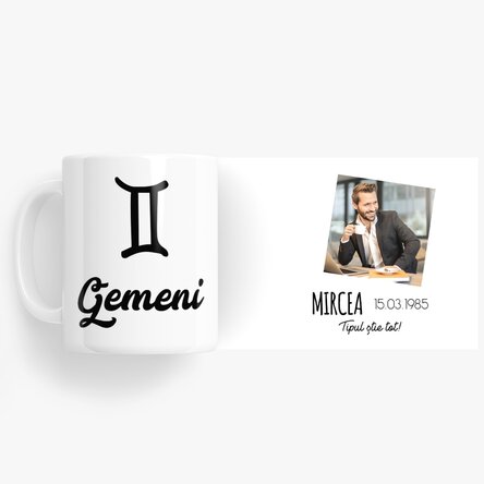 Cană zodiac personalizată cu poză și text - Gemeni
