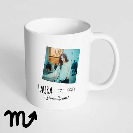 Cană zodiac personalizată cu poză și text - Scorpion