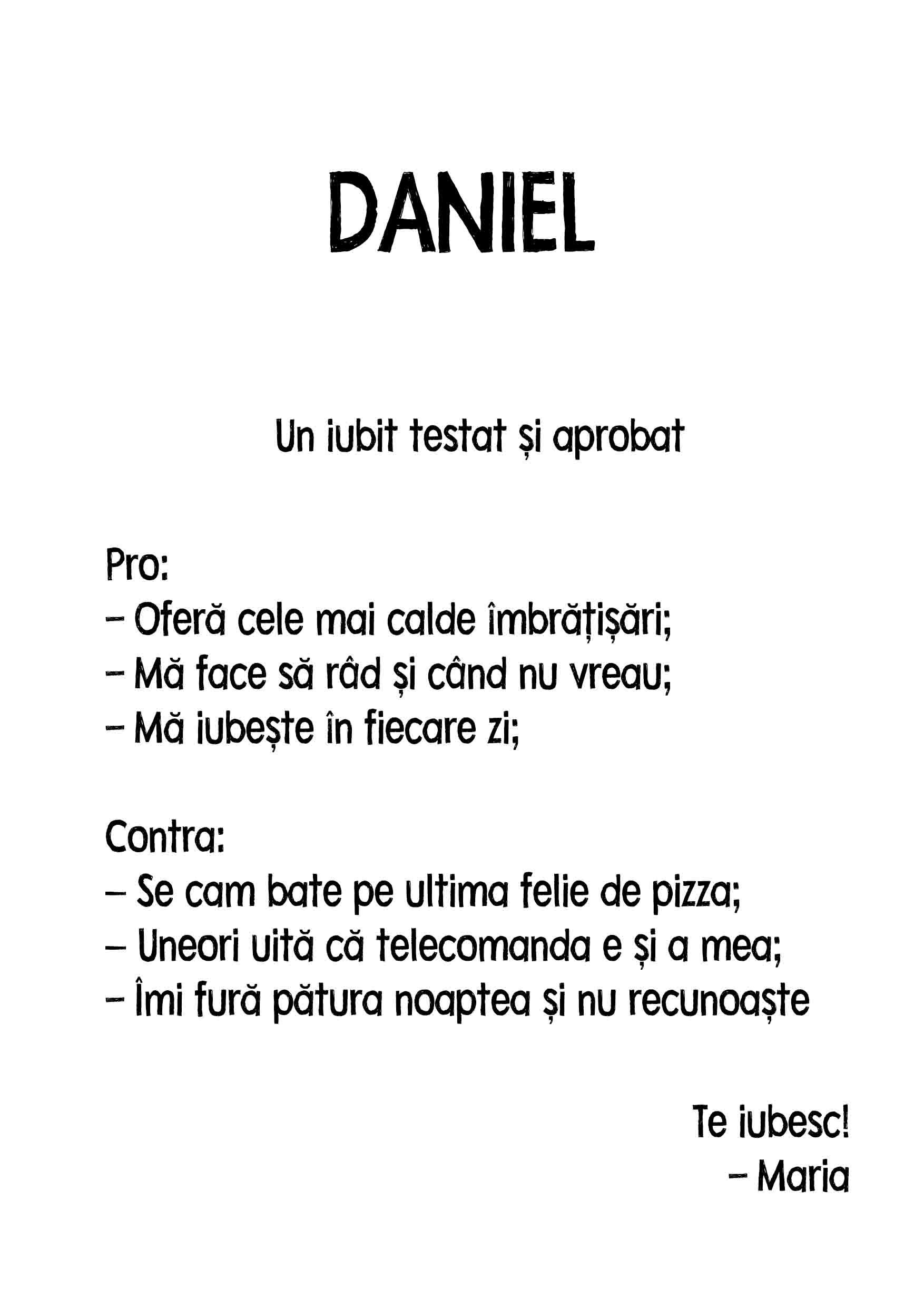 Surprinde persoanele dragi cu un cadou unic și plin de umor! Acest card tip „review” îi va face să zâmbească și să se simtă apreciați în același timp. Cu un rating de 4,5/5 stele, mesajul include puncte amuzante despre calitățile lor și mici „defecte simpatice”.