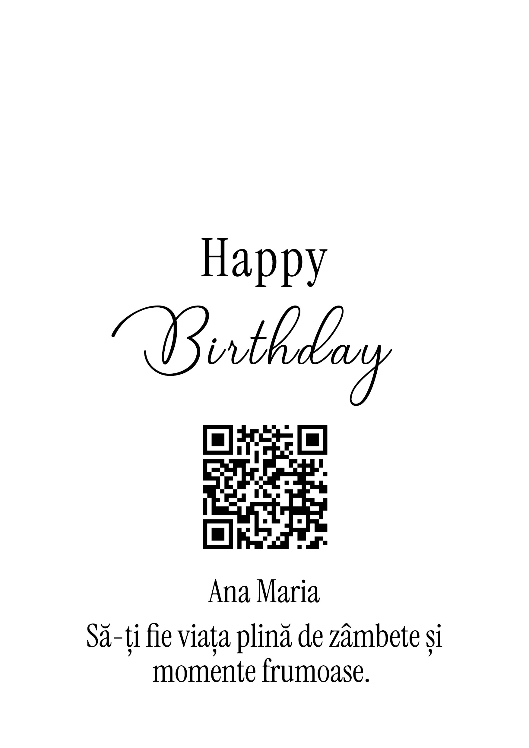 Card personalizat cu text și cod QR - Happy birthday!