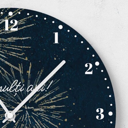 Notă: Ceasul are nevoie de o baterie AA, neinclusă; Ceasul cu diametrul de 30 cm nu are secundar, având doar două limbi din fabricație de culoare neagră. Ceasul cu diametrul de 20 cm are secundar. Culorile limbilor pot fi albe sau negre, în funcție de tipul mecanismului disponibil în stoc la momentul comenzii.