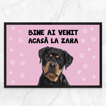 Călcatul pe el? Total permis, dar s-ar putea să auzi un „Ham!” imaginar de fiecare dată când o faci! Ideal pentru a spune „bine ai venit, dar trebuie să îți dau voie”, acest covoraș personalizat e perfect pentru a arăta cine este adevăratul șef în casă. Fie că patronează ușa de la intrare sau zona preferată de joacă, fiecare pas va fi un reminder că dragostea necondiționată vine pe patru lăbuțe și cu multă, multă blană!
