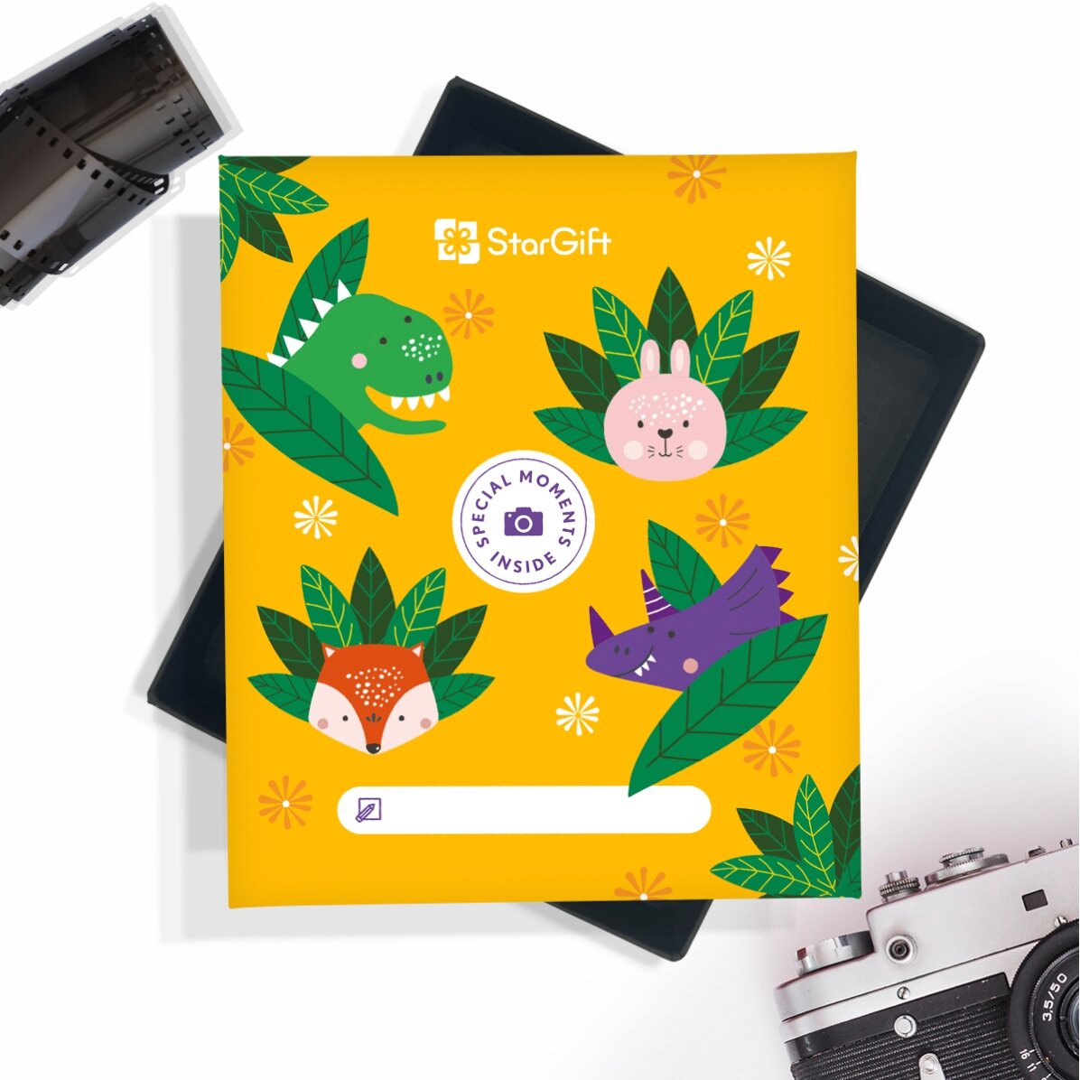 Surprinde-i pe cei mici cu un cadou inedit, pe care să îl aibă aproape și de care să își amintească mereu. Cutia cu amintiri este ideală când vrei să strângi toate amintirile într-un singur loc. Acum îți oferim posibilitatea să marchezi evenimentele importante din viața celor mici, alegând 32 de fotografii digitale, pe care noi le vom transforma în amintiri reale. Pozele vor fi împachetate într-o cutie simpatică, gândită special pentru aceștia, care cu siguranță va stârni curiozitate și va oferi emoție! În plus, tot tu poți decide și care va fi culoarea conturului pentru fiecare poză în parte și, mai mult decât atât, poți adăuga și un scurt text pe fiecare fotografie!