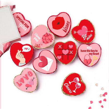 ❤️ Set de 10 mini ciocolățele în formă de inimă - Model LOVE