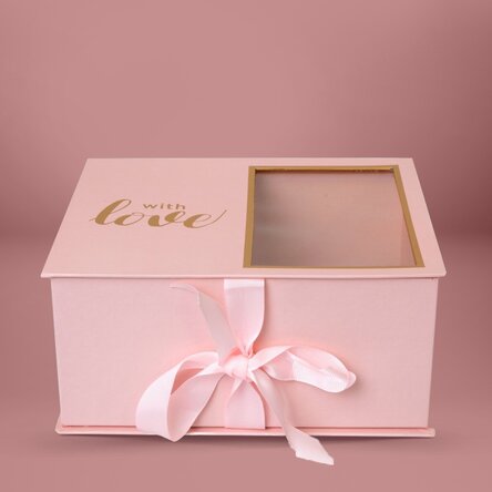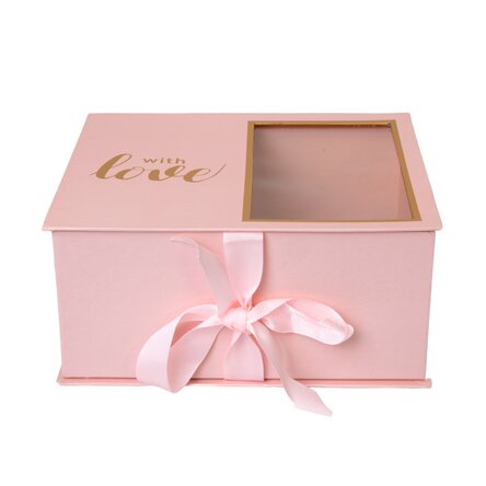 Cutie cadou with love cu fereastră - model roz