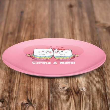 Dacă vrei să oferi un plus decorativ mesei, poți opta pentru o farfurie personalizată cu text, perfectă pentru a inaugura momentul special din viața ta!
