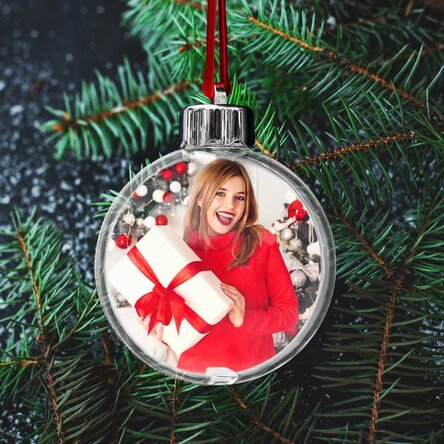 Glob transparent personalizat față-verso cu o poză și text - Crăciun fericit!