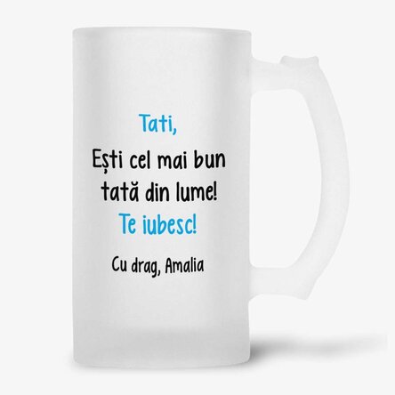 Halbă de bere personalizată cu mesaj și o poză - Tata, eroul meu