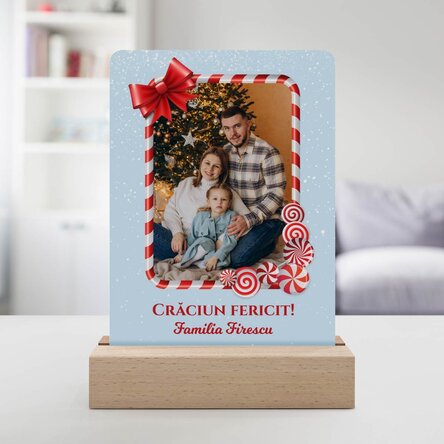 Lampă veghe LED personalizată cu o poză și mesaj - Crăciun fericit!
