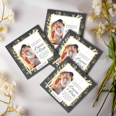 Spre exemplu...magneți personalizați cu poză, text și decor floral, perfecte indiferent de tematica evenimentului dumneavoastră.