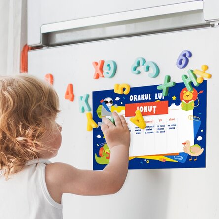 Îi poți face o surpriza copilului tău cu un orar personalizat cu numele lor și sigur vor fi încântați să îl realizeze într-un mod curat sau colorat, numai bun de pus la loc de cinste pentru a le aminti care sunt orele și activitățile pe care le au în program.