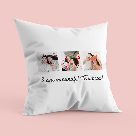 Ce pot personaliza? Perna poate fi personalizată cu fotografii si text.