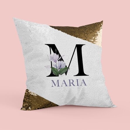 Pernă personalizată cu inițială și nume - Paiete aurii