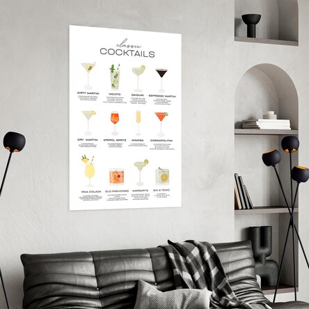 Un strop de culoare, un strop de alcool și multă bună dispoziție – toate într-un singur poster! „Cocktails Menu” aduce atmosfera vibrantă a barurilor de vară direct în bucătăria ta, pe terasa de acasă sau în localul tău preferat. Ilustrat cu cele mai îndrăgite cocktailuri, acest poster este atât decorativ, cât și inspirațional: ori de câte ori îl privești, parcă auzi shakerul și simți gustul proaspăt de lime. Ideal pentru iubitorii de mixuri savuroase, pentru petrecăreți și pentru cei care știu că o băutură bine aleasă poate transforma orice zi.