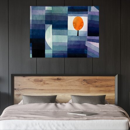 Un joc între geometrie, lumină și emoție. Paul Klee reușește să transforme formele simple și culorile profunde într-o scenă aproape poetică. Lucrarea îmbină calmul serii cu misterul introspecției, lăsând loc pentru interpretări personale.
