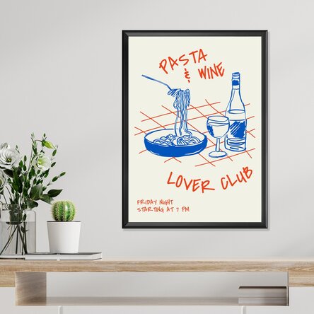 Cu un design minimalist și o paletă veselă de culori, acest poster este dedicat iubitorilor de paste și vin. Perfect pentru casă, living room sau spații moderne, adaugă un vibe relaxat și plin de viață, inspirându-te să te bucuri de micile plăceri ale vieții — un bol de paste și un pahar de vin bun.