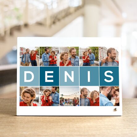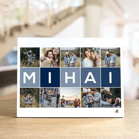 Ramă foto de birou personalizată cu 10 poze și nume din 5 litere