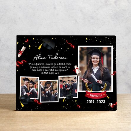 Ramă foto de birou personalizată cu 4 poze și text pentru absolvenți