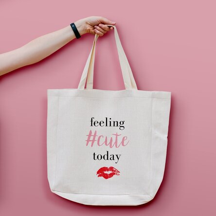Modelul "Feeling #cute today" este perfect pentru o tinuta lejera in timpul sezonului cald si nu numai. Noi ne-am gandit ca ar fi timpul sa renuntam la gentile sobre si sa adoptam un stil lejer, relaxat si jucaus. Sacosile noastre personalizate sunt foarte versatile si le poti folosi usor in diferite scopuri: ca geanta de zi cu zi, fie ca mergi la job sau la scoala, ca o sacosa lejera pentru cumparaturi sau o geanta practica in care incap diferite gadgeturi.
