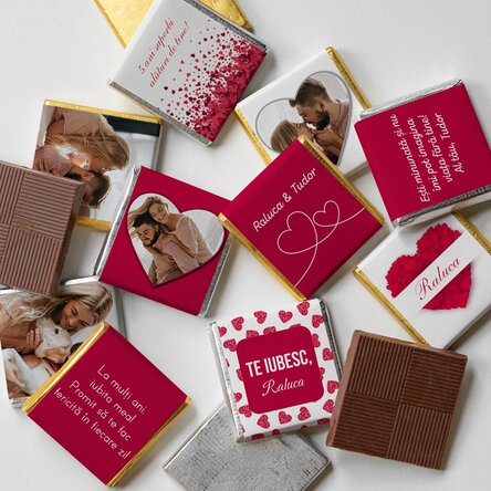 Ce pot personaliza? Mini-ciocolata poate fi personalizată cu text și poze.