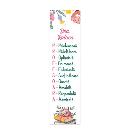 Semn de carte personalizat cu text pentru profesoară