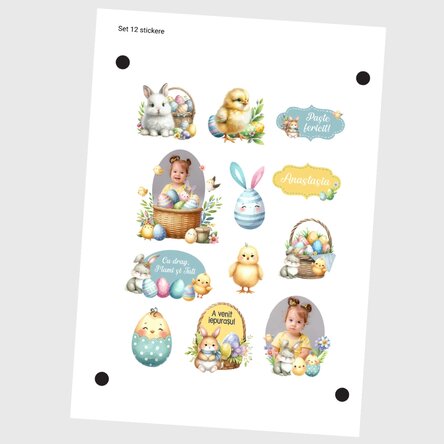 Set de stickere (etichetă autoadezivă) personalizate cu poze și text - Paște fericit!