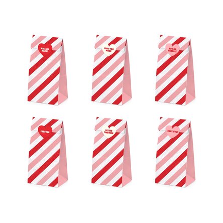 Punguțele cadou au rolul de a aduce un plus de mister și emoție cadoului din interior. Punguțele sunt potrivite pentru cadouri de mici dimensiuni, cum sunt mini-ciocolatele, brelocuri, ornamentele de sticlă, semnele de carte și insigne. Setul conține 6 bucăți de punguțe dungate și 6 stickere cu mesaje diferite. Surprinde și oferă bucurie celor dragi!