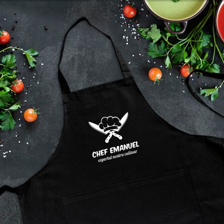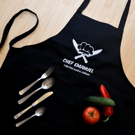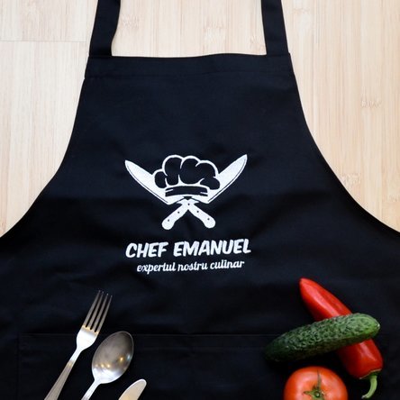 O astfel de persoană merită să îi fie recunoscute meritele gastronomice. Dar nu e musai. Noi îți oferim posibilitatea să personalizezi numele sau mesajul pentru cel mai pasionat bucătar. Poți să îi scrii un mesaj de tipul „Grătarul nu e mare sfârâială!” sau „Natural Born Griller”, sau orice altceva îți vine în minte, care să îi ofere cu adevărat satisfacție atunci când îl va purta.