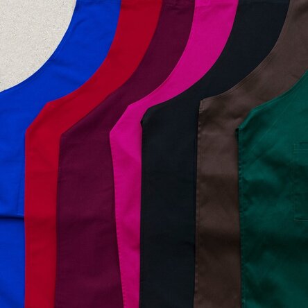 Culori disponibile: negru, roșu, vișiniu, verde, roz, albastru, maro În funcție de stocul disponibil, șorțul de culoare roz poate avea o nuanță diferită (roz deschis sau închis).
