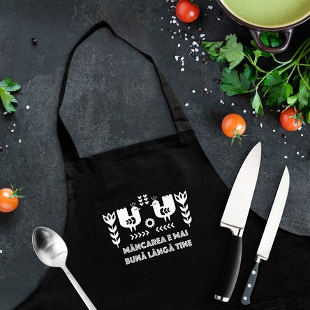Oferă-i mândria lui de bucătar și alege să-i faci cadou un șorț personalizat cu numele său și un mesaj precum cel din imagine, sau unul gândit de tine special pentru bucătarul tău preferat!
