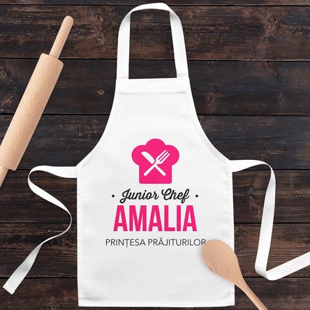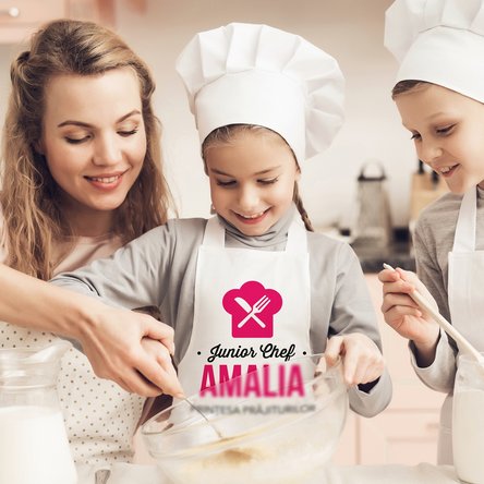 Fie că ajută la realizarea unei prăjituri delicioase sau pregătesc cina alături de mama pentru întreaga familie, cu un sorț personalizat, creat special pentru bucătarul/bucătăreasa junior, cei mici se vor bucura din plin de activitățile în bucătărie!