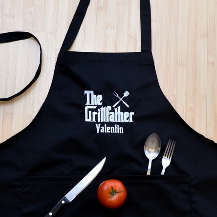 Un cadou foarte amuzant si potrivit pentru nasul caruia ii place sa faca gratare. Cel mai mult imi place ca este brodat in material, nu imprimat, il face usor de curatat. Recomand!