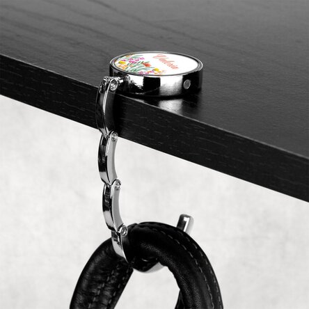 Știm cu toții cât de dificil este să nu ai suficient loc atunci când vrei să îți așezi geanta în locațiile în care te duci. Mic, compact și ușor de purtat cu tine, suportul pentru geantă poate fi așezat pe masă sau pe orice suprafață, iar problemele dispar instant! Dacă știi pe cineva care întâmpină astfel de probleme, iar toate lucrurile din jurul său trebuie să fie așezate în locul perfect, fără să ocupe prea mult spațiu, atunci personalizează-i un suport de geantă cu nume și cu siguranță îți va fi veșnic recunoscător!