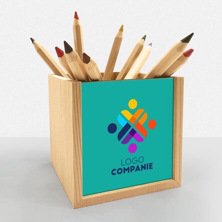 Ce pot personaliza? Suportul de creioane poate fi personalizat cu logo