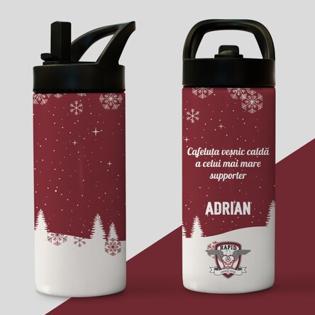 Termos FC Rapid cu mâner și pai personalizat cu text - Peisaj de iarnă