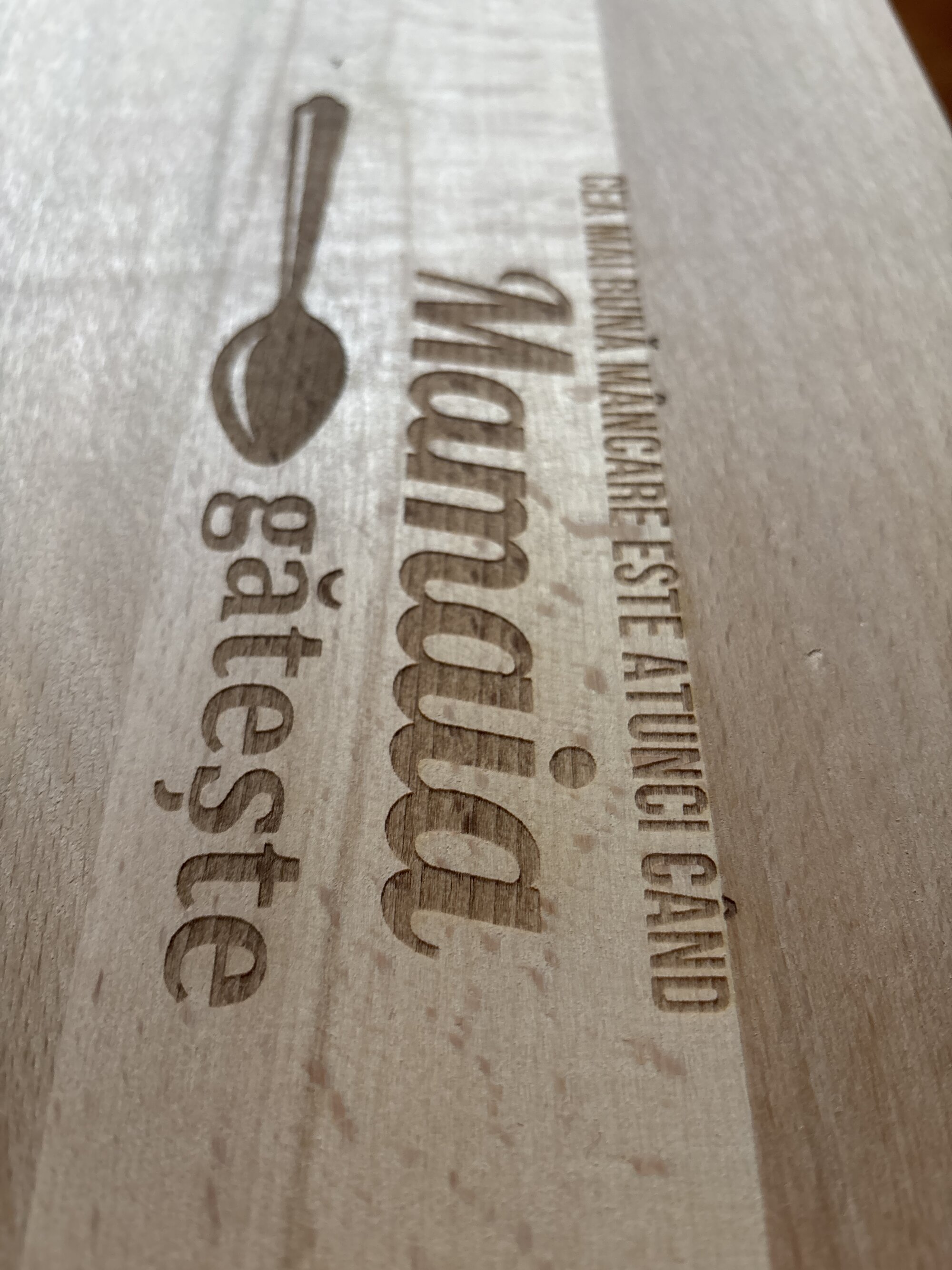 Sunt deja la a doua comandă pentru acest tocător! Primul arată încă foarte bine chiar și după ce a fost folosit un an. M-a surprins total calitatea lemnului și a gravării. Faptul că poți previzualiza mesajul scris, înainte de finalizarea comenzii ajută, astfel nu ai o surpriză neplăcută la livrare.