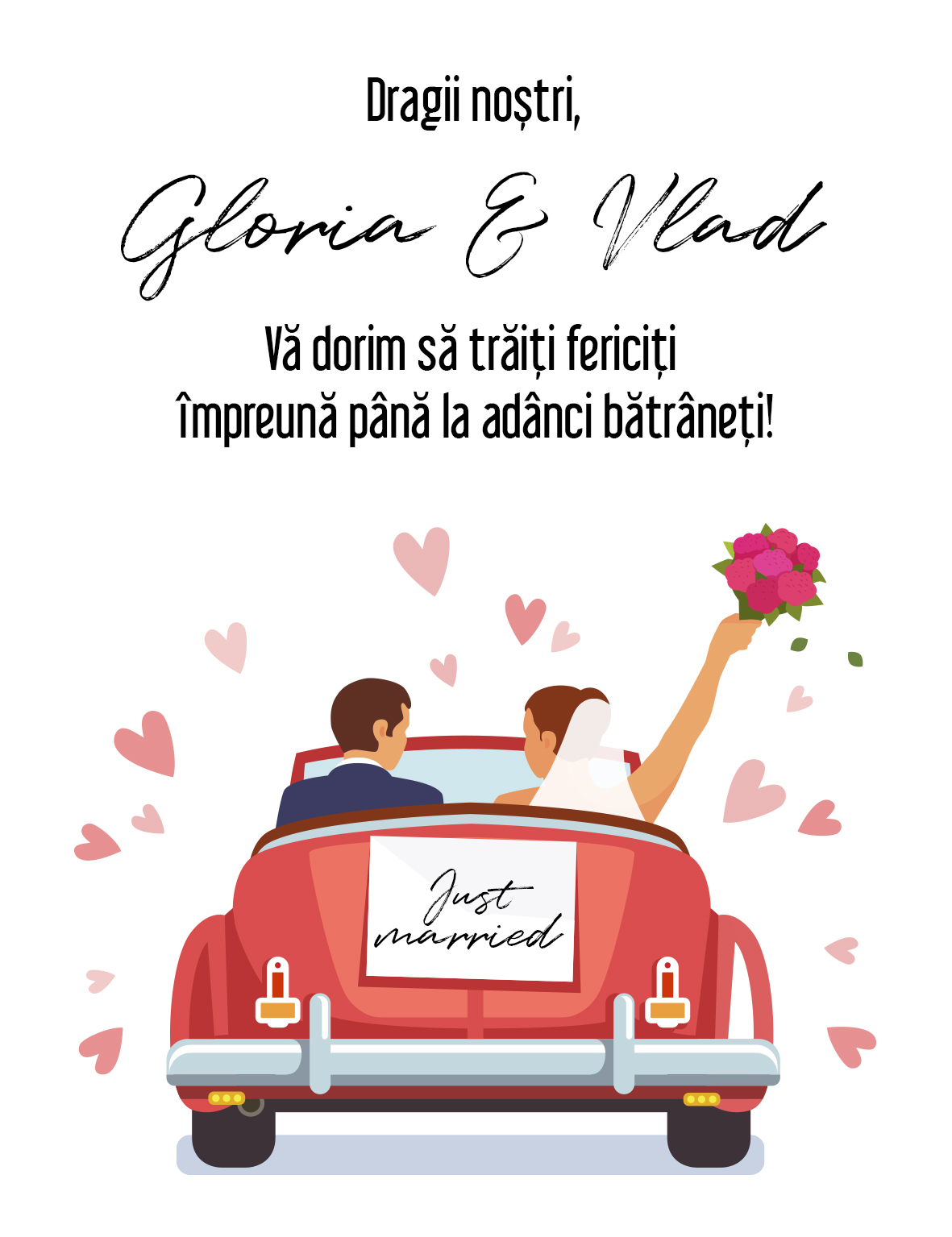 Este important ca celor apropiați să le transmiți mesaje inspirate, care să arate cât de mult înseamnă acea zi specială pentru ei cât și pentru cei care ajung să sărbătorească alături de ei aceea zi unică din viața lor. Alege să îi feliciți pe proaspeții căsătoriți și să le transmiți gândurile tale bune într-un mod diferit și original, cu un vin personalizat.
