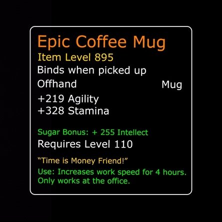 spectaculos precum „Epic Coffee Mug” sau „Rare Alliance Mug”. Apoi, trebuie să